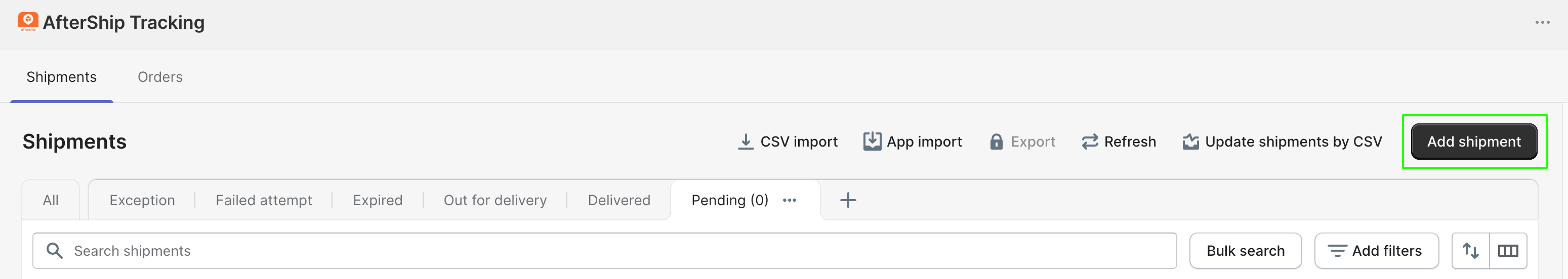 To make sure AfterShip data is pulled into Gorgias, alternatively to the customer creating a ticket, go to your AfterShip Dashboard and find a customer with available tracking information, or add a new shipment manually: