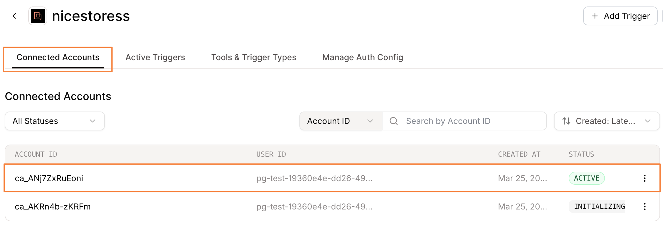 - If successfully installed, you will find an active integration under the Connected Accounts tab:
