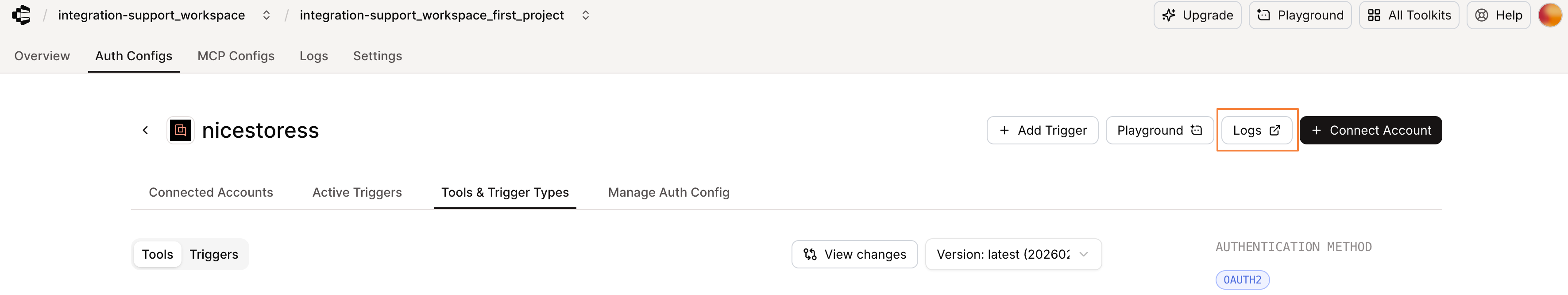 All actions work in the same manner, and once completed, they can be viewed under the Logs tab: