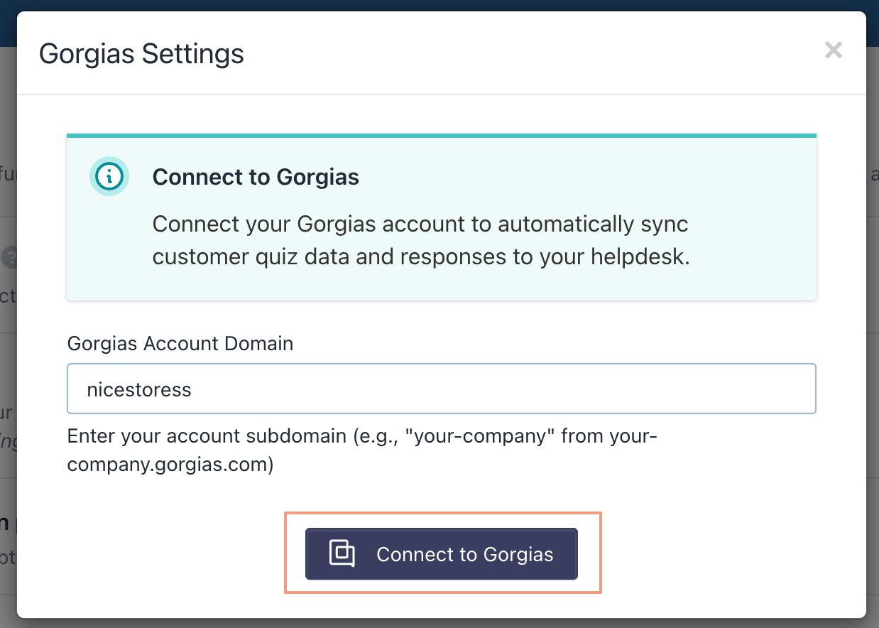 - In Octane, add your Gorgias subdomain, connect it, and authorize the app: