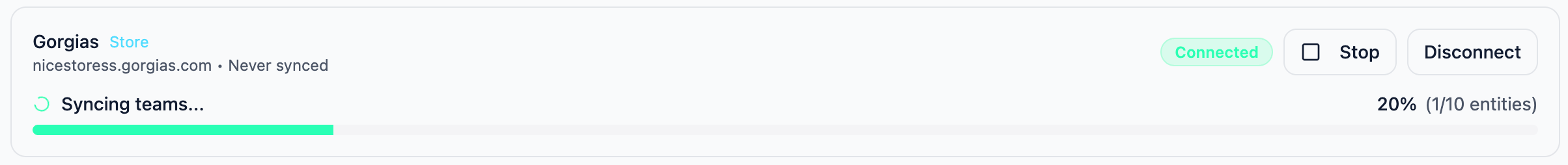 - As soon as the setup is complete, a sync of your Gorgias data will be initiated: