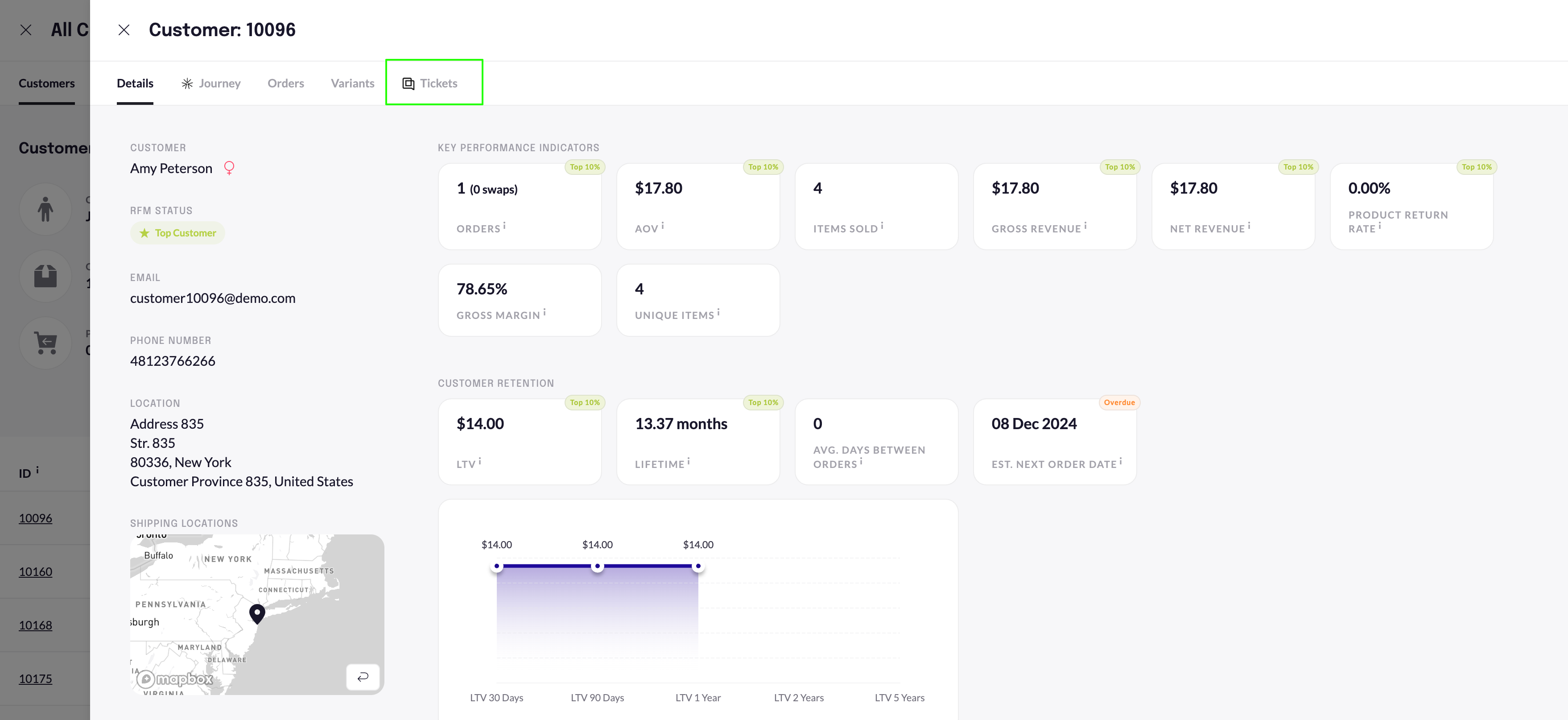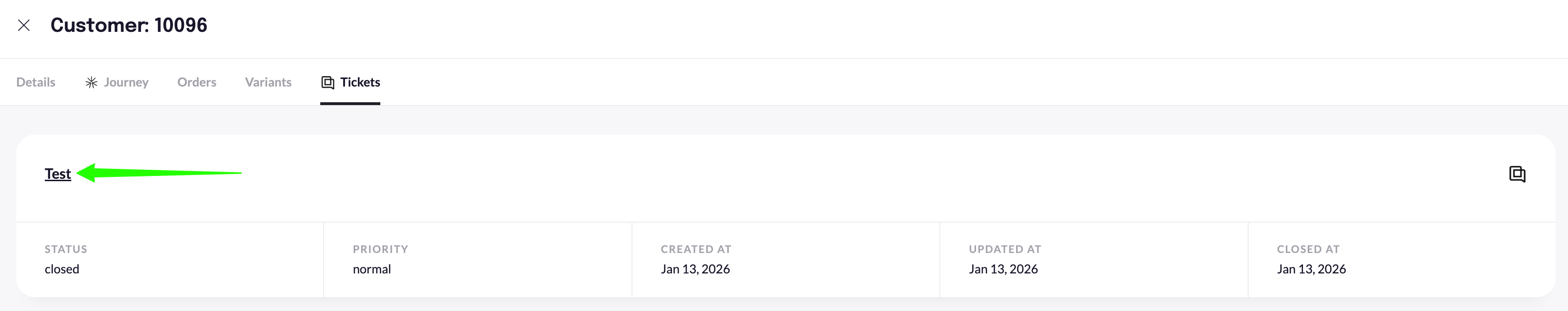 Once connected, your ticket data is transferred on a daily basis from Gorgias to your RetentionX account and can be found in the individual customer profiles under Tickets: