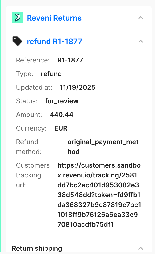 Note that the widget only retrieves RMAs created in the last 75 days, and the customer needs to be present in the Reveni app, with a matching Gorgias email address.